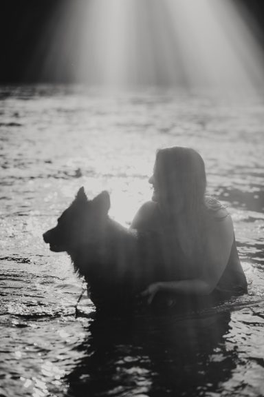Shadow springt voller Lebensfreude am Ufer entlang und doch führt jeder Weg wieder zu Alexa - eine Umarmung, eine nasse Pfote in einer warmen Hand. Jedes Foto lässt Momente der Verbindung spürbar werden, eine Verbindung, die es verdient hat, für immer festgehalten zu werden.